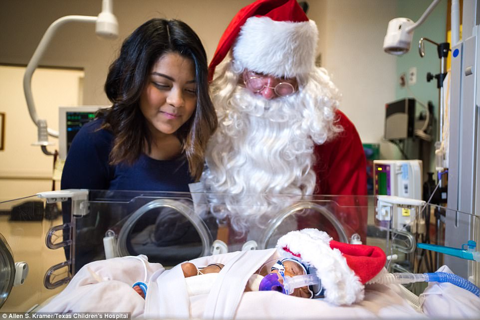 聖誕節還沒到,節日的氣氛已經很濃郁了。最近,美國德州兒童醫院的小寶寶們迎來了聖誕老人,提前過了一個特別的聖誕節。這些小寶寶都是不足37週就出生的早產兒,必須在加護病房得到特別的照顧。