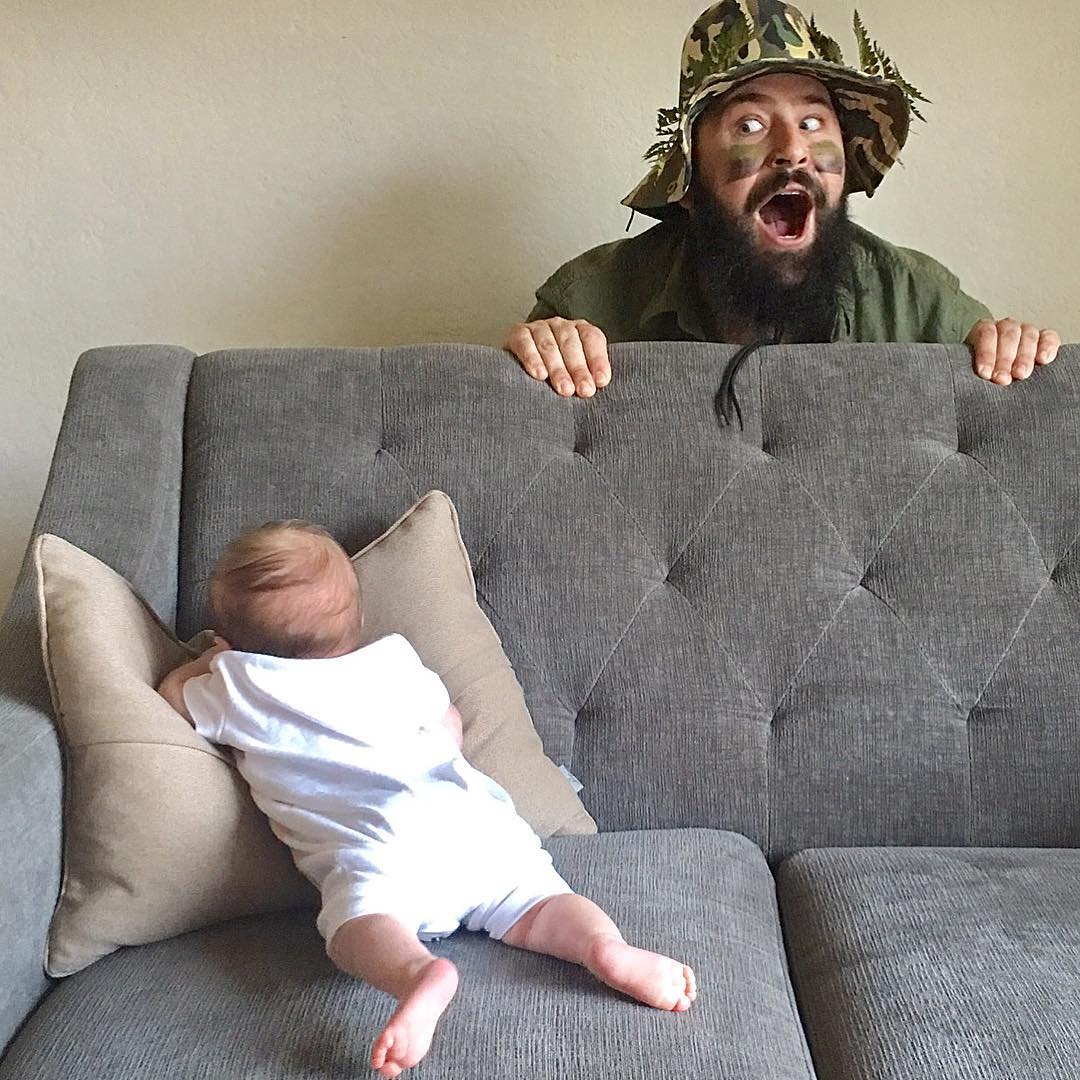 2017年12月18日有些人天生就愛搞怪,美國加州36歲男子Sholom Ber Solomon就是這樣的人。一年前,他成為了新手爸爸,有了一個可愛的女兒。從那之後他更是幹勁十足,開始帶著寶寶一起搞怪。看看他和女兒一起拍的照片,每一張都能讓人笑出腹肌。