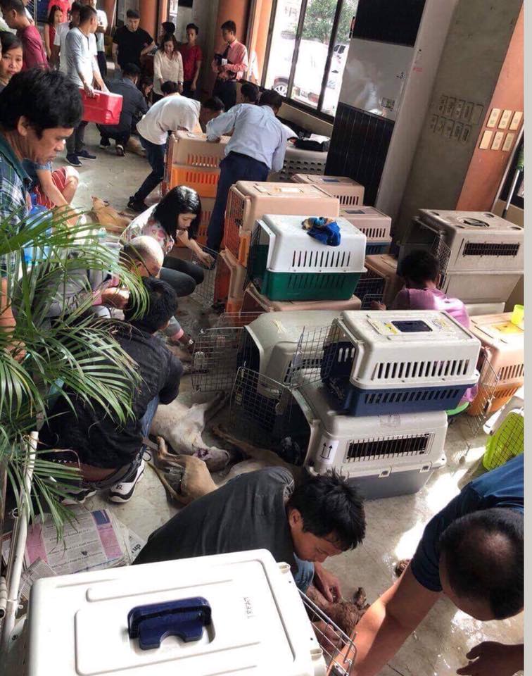 ▼工作人員為那些還有微弱氣息的狗狗身上澆水降溫、幫牠們拍打按摩,希望能夠讓祂們恢復意識。
