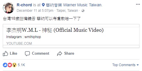 ▼他還直接霸氣點名華納音樂應該給新人一個機會,考慮栽培李杰明。