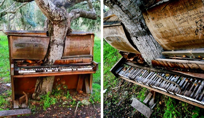 ▼加利福尼亞一棵從廢棄鋼琴中長出來的樹。