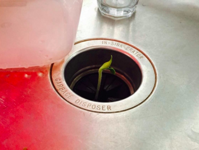 ▼南瓜種子不小心掉入水槽2個星期後,現在竟然發芽了。