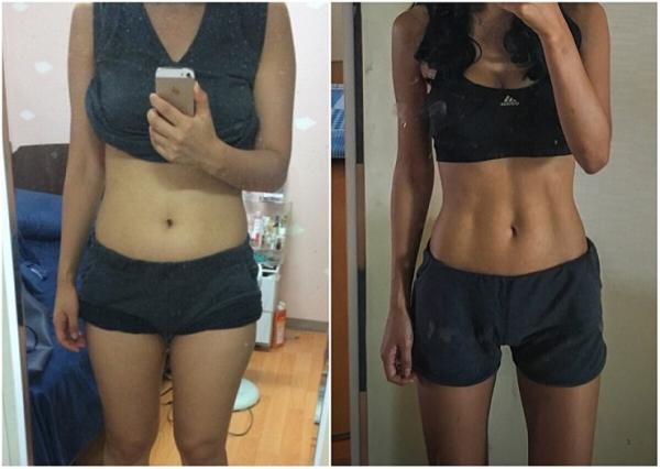 ▼這是她瘦身前後的改變,超美的川字肌讓人很羨慕。