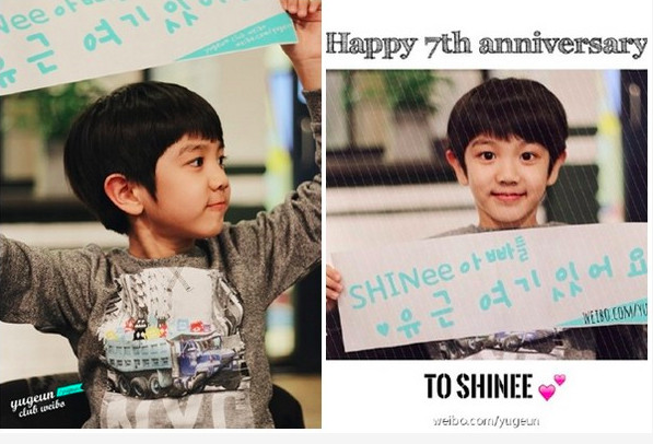 ▼佑根一直是SHINee的粉絲,之前SHINee出道滿7年,他還親手製作了應援字條,給爸爸們加油,字條上寫著:「SHINee爸爸們,佑根在這裡!」