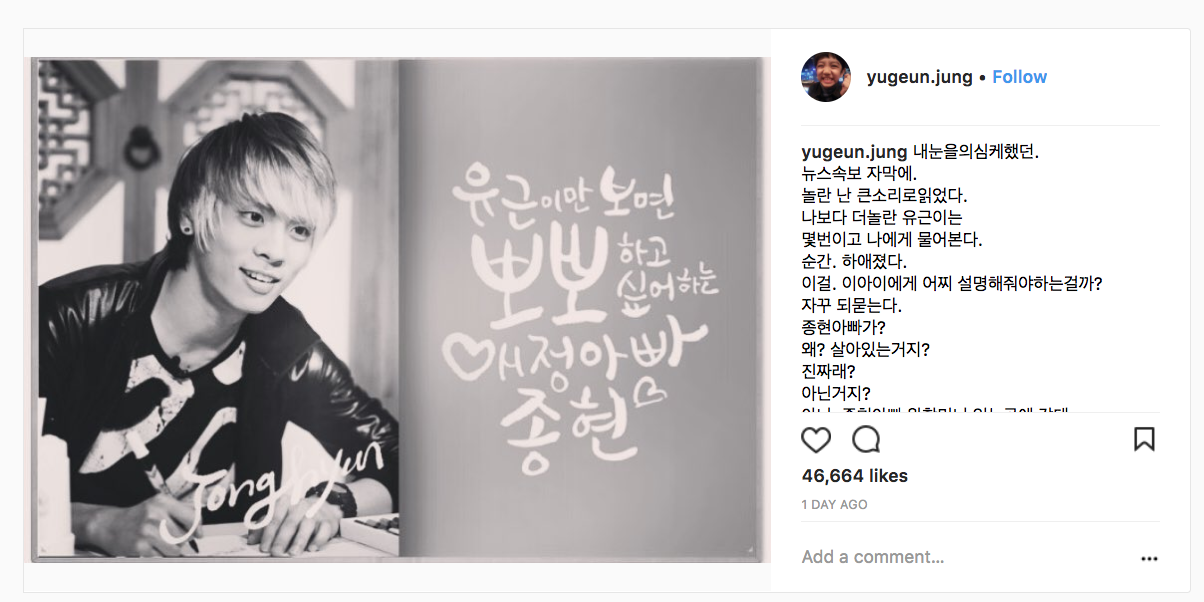 ▼19日凌晨,佑根的家人在IG表示:「這個該怎麼跟小孩說明才好呢?(佑根)一直在問我,『是在說鐘鉉爸爸?為什麼?他還活著對吧?新聞說的是真的嗎?不是對吧?』」