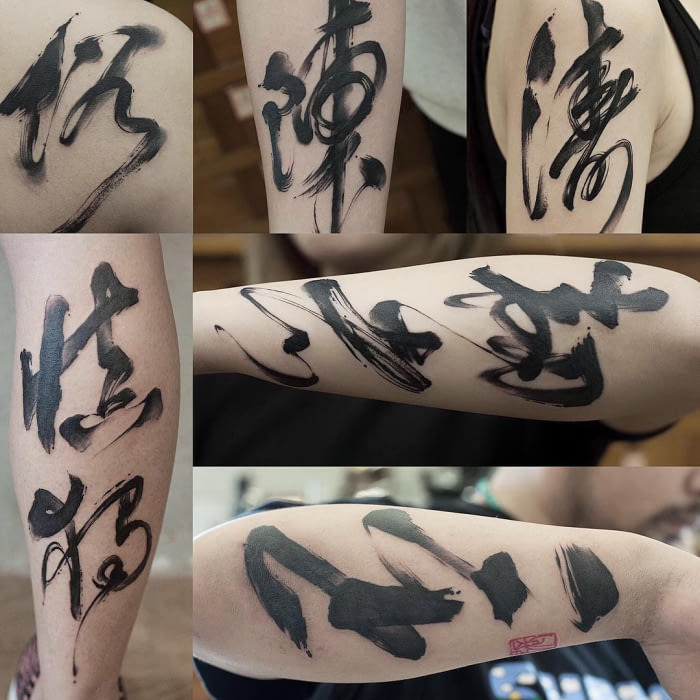 ▼還可以直接將書法字紋到身上,因為字體比較特別,看起來不會太刻板。