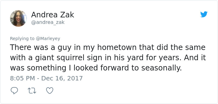 ▼「我家鄉一個人的院子裡有大型松鼠裝飾,他也會做同樣的事,我超期待那些變裝的。」