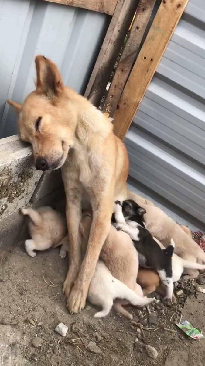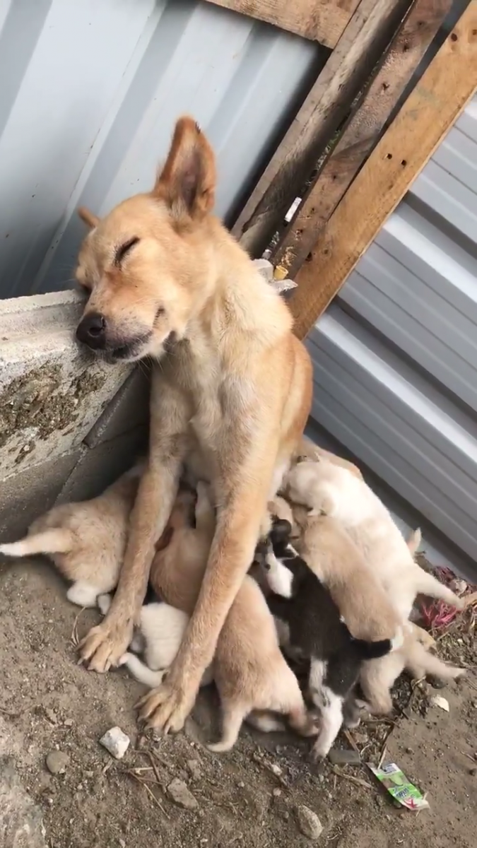 狗媽媽照顧小屁汪累癱「餵奶時靠牆瞇一下」 發現有人馬上驚醒保護牠們
