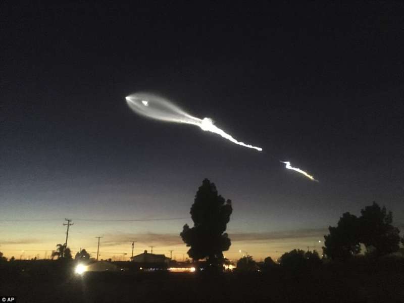 這樣的異象究竟是什麼現象造成的呢?答案揭曉!這道雲霧其實是發射升空的SpaceX Falcon 9火箭,火箭發射地點位於范登堡空軍基地,它有一重要任務是載著10個通信衛星飛向天際。