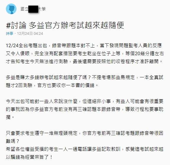 ▼在12月24日考試剛被取消時,就有網友在PTT上爆掛。