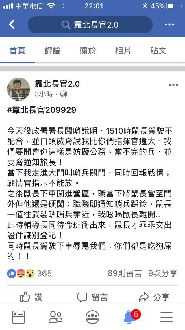 ▼這名爆料的官兵表示當時鼠長(署長)因不遠配合出示證件,哨兵回報戰情室之後依指令不願放行,沒想到署長直接下車硬闖,直到驚動了輔導長和待命班之後,才交出證件識別登記。