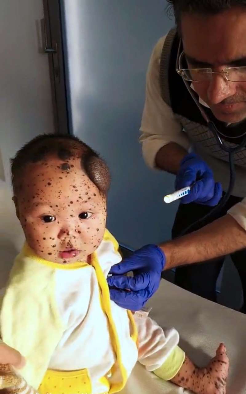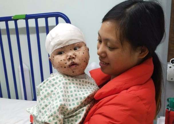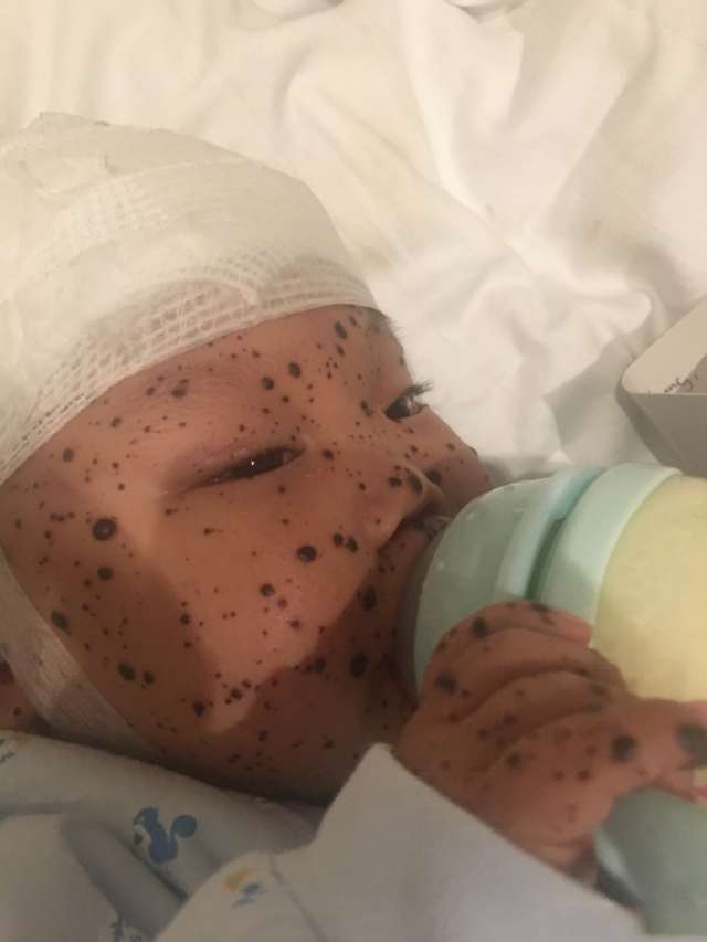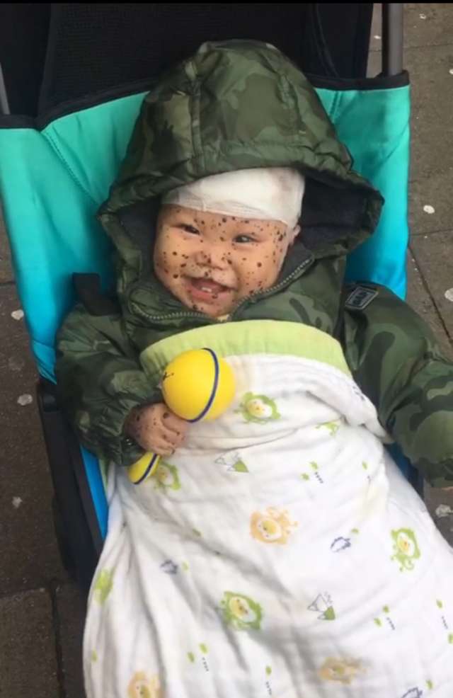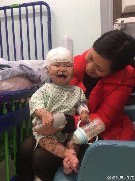 ▼經過英國醫生的診斷,小佑康患的是先天性黑色素細胞痣(Congenital Melanocytic Naevus , CMN),這是一種基因的突變,可能發生在身體任何部位,對健康沒有直接的影響。小佑康也在12月19日進行了手術,切除了頭部的3個大瘤和部分小瘤,手術非常順利,目前正在醫院進行術後觀察。