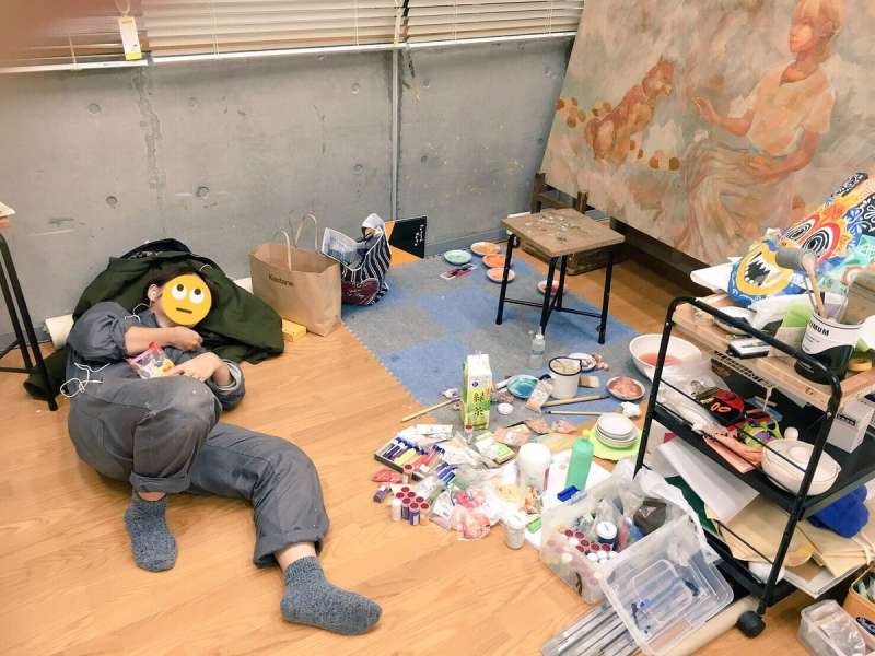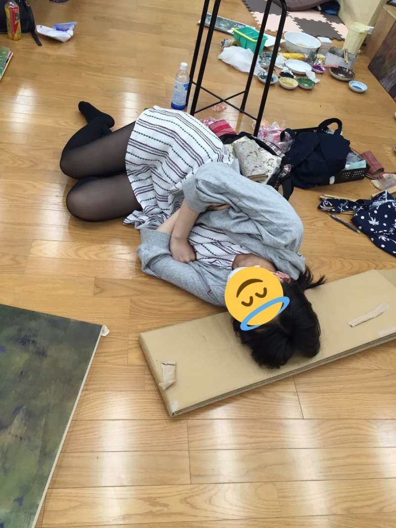 ▼近日有一名在日本東京造形大學的學生「@mUOYOUm」在推特上分享了「美術大學生睡眠系列」的照片,讓大家能夠看到美術系同學們忙得「到處都能睡」的奇景。