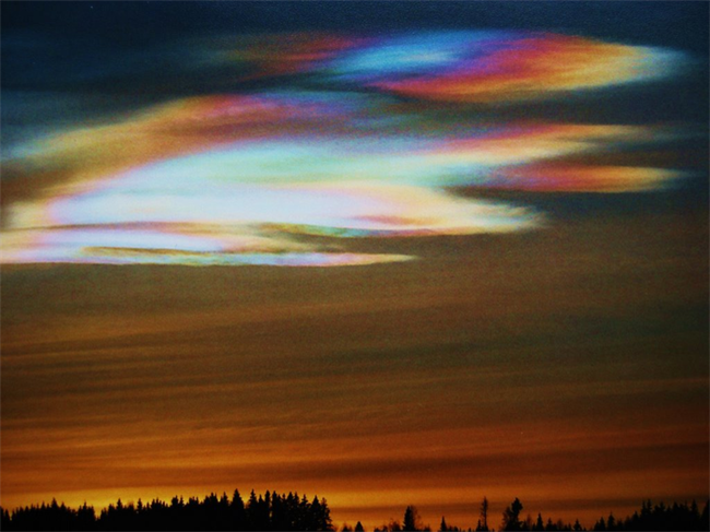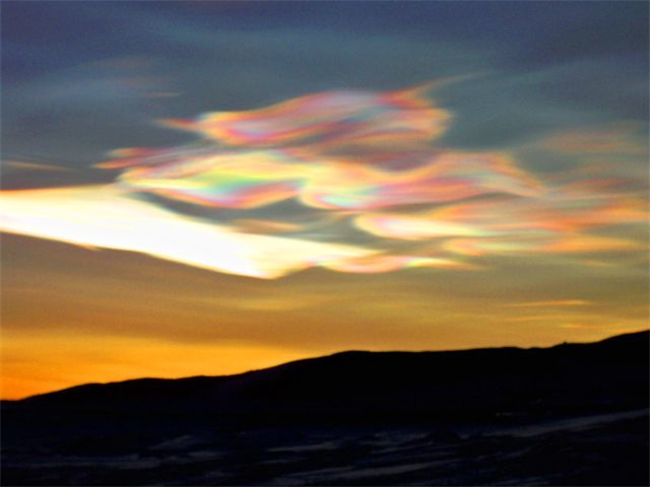 貝母雲常出現在極地地區,也被稱為極地平流層雲。在黃昏或者黎明時,這些薄而高的雲折射出太陽的光線,呈現出彩虹色的光芒,任何一朵雲都會出現這種現象。有些貝母雲含有硝酸或者硫酸,產生的氯氣有助於減緩臭氧的消耗。