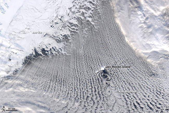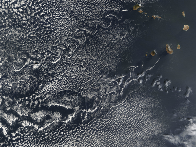 漩渦雲可以垂直形成,也可以水平形成,類似颶風或者龍捲風。當氣流碰到障礙物後,在雲朵層表面形成漩渦式的螺旋雲體,漩渦雲一般從地面監測不到,可以通過飛機或者衛星的角度來觀看。水平滾動的漩渦雲又叫雲街。