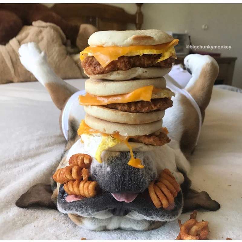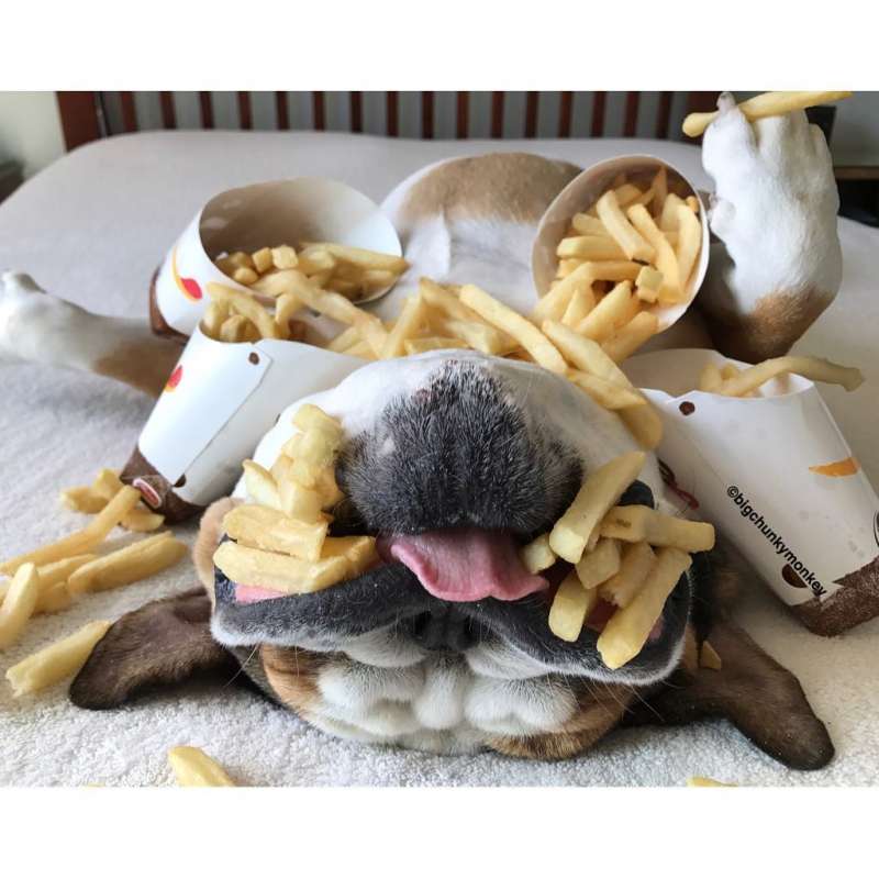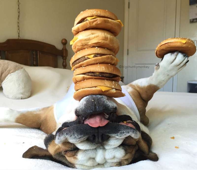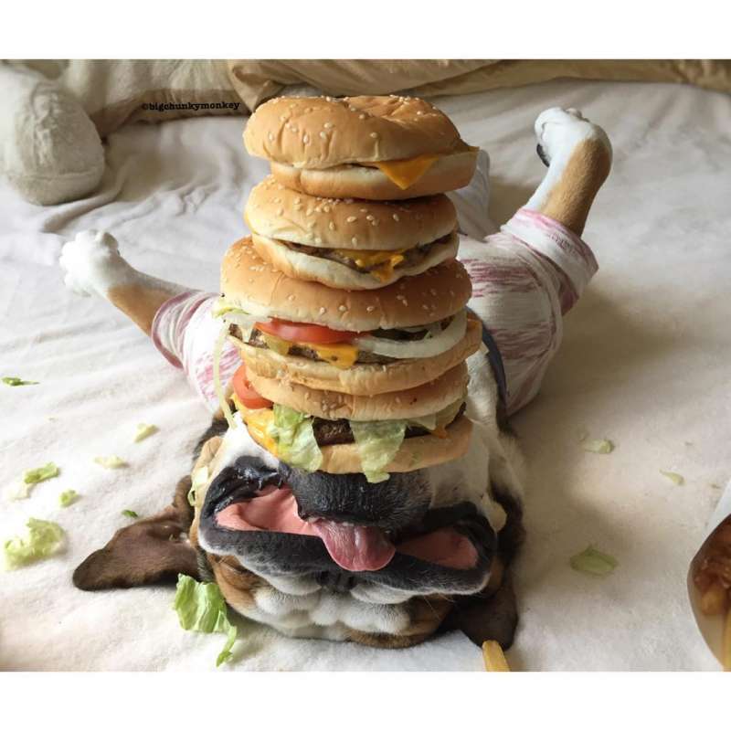 ▼披薩、漢堡、薯條……Monkey真的聞不到食物的香氣嗎?這些東西普通的狗狗根本無法抗拒啊。