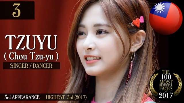 2017年12月28日從1990年開始,電影網站「TC Candler」每年都會選出「全球最美臉蛋」,上榜的女星、男星遍布全球,連續20多年來影響力越來越大。不久前,「2017全球最美臉蛋」終於出爐,台灣女孩周子瑜拿到了第三名,這也是全亞洲最高名次。