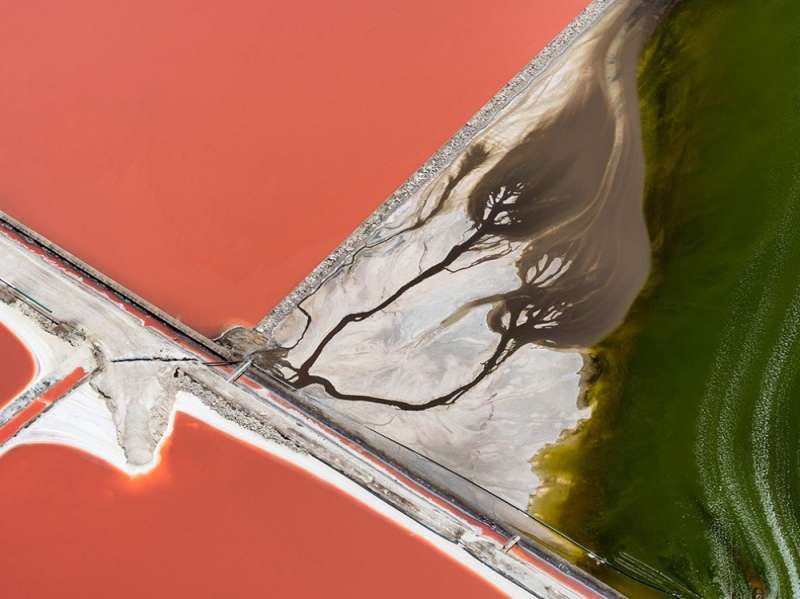 ▼13. 舊金山附近的水域,因為有微生物所以變成了奇特的顏色。
