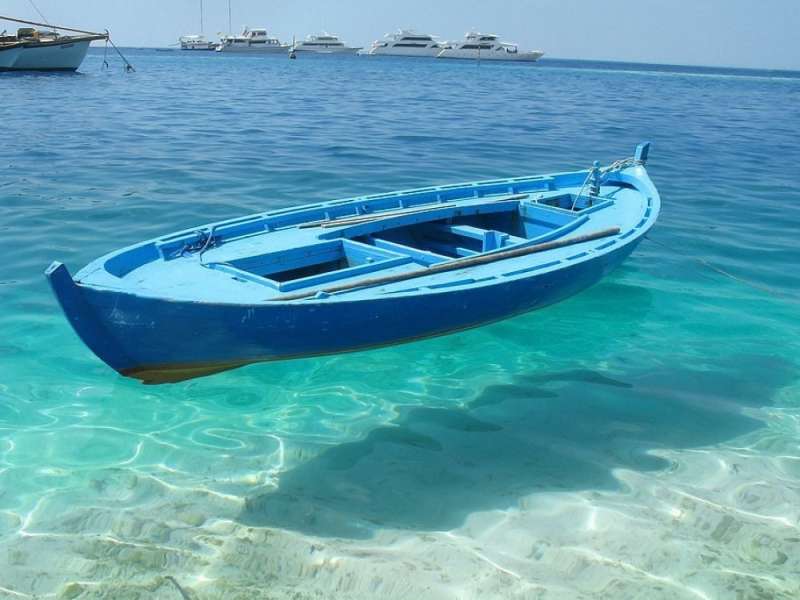 ▼7. 斐濟澄澈的海水,看起來就像船漂起來一樣。