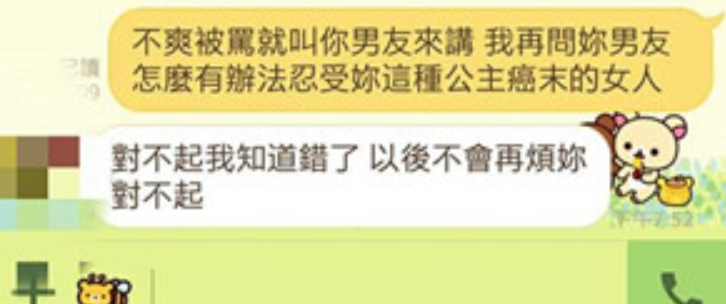 ▼在經過女網友一輪反嗆轟炸之後,對方也趕緊道歉,還表示以後對不會再煩她了。