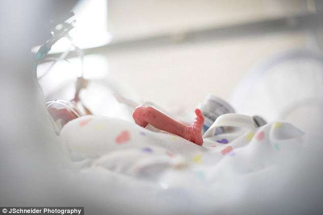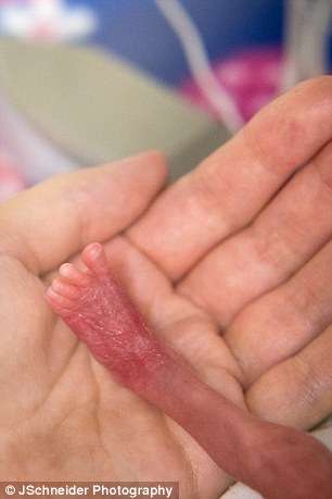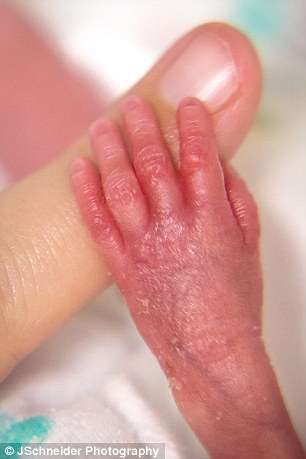 ▼Robin表示:「她剛出生的時候很小,就像小鳥一樣,身上沒有體脂,我們能夠看到她的皮下血管。她的皮膚就像羊皮紙一樣,手和腳都很小。她的肺部還沒有發育好,只能靠儀器呼吸。」