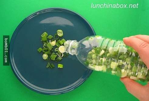 ▼2.把大蔥切好後放在塑膠瓶中再進行冷凍。