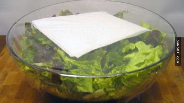 ▼18.把紙巾如圖擺放可以使生菜在一周內都很新鮮。
