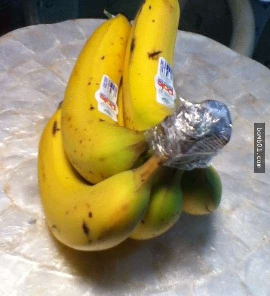 ▼17.把一整塊香蕉的頂部用塑膠薄膜包起來以保持新鮮。