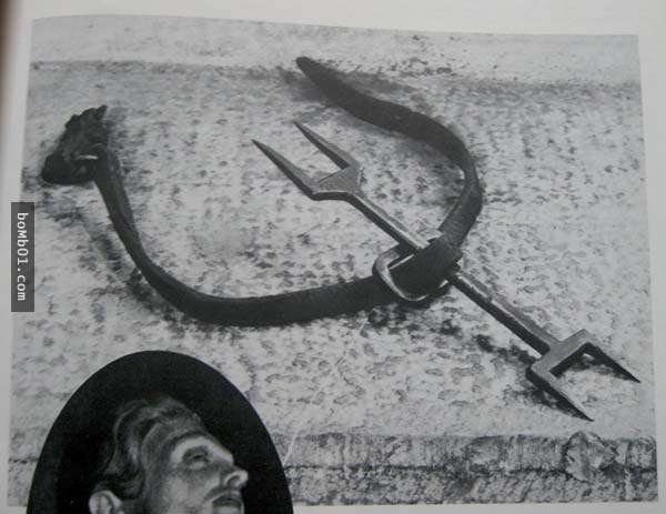 ▼9.乳房裂具:這個裝置用於女性,主要是那些被指控強迫流產或強姦的女性。鐵爪可以加熱燒紅,緊緊勾住女人的乳房。即使她經受折磨大難不死,她也永遠都活在恐怖的陰影裡和屈辱的傷痕之下。