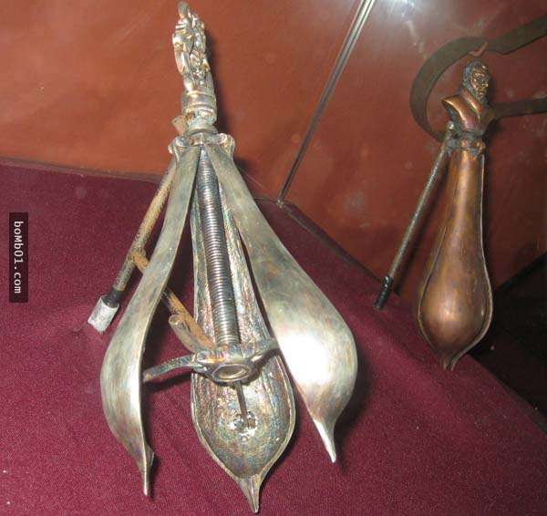 ▼7.開花梨刑具:把這個裝置插進罪犯身體的孔洞裡,然後轉動螺絲,梨子的四片「葉子」會打開,給罪犯造成痛苦。