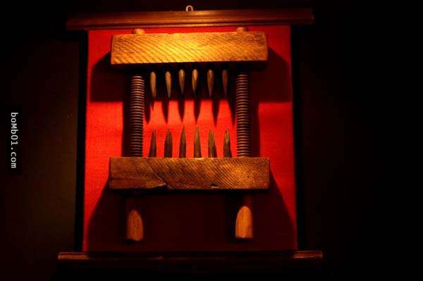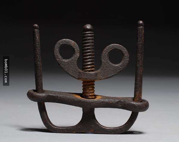 ▼18.手指夾:罪犯的手指被放在這個裝置裡面,當審訊者轉動把手的時候,手指會被慢慢夾斷。