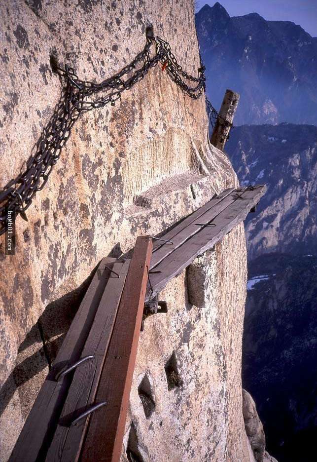 這些還不是最恐怖的,岌岌可危的華山棧道是世界上最危險的路。這條古道究竟有多危險呢?下面我們一起看一看。