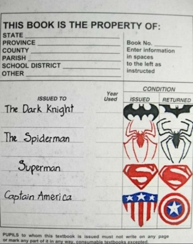 ▼現在很少人使用的借書卡上,有蝙蝠俠和超人的蹤跡。