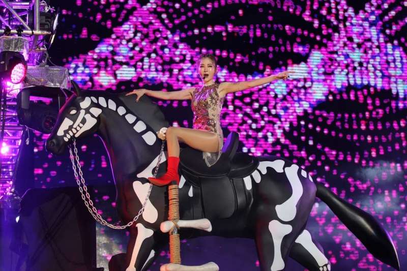▼當晚謝金燕一連演唱《練舞功》、《跳起來》、《叉燒包》、《粉紅色的腰帶》、《舞曲大悲咒》、《姐姐》,還首唱創作的新歌《turn口罩》。舞台搭建得非常華麗,有超大木馬饒場,還有大型鞋狀汽車。