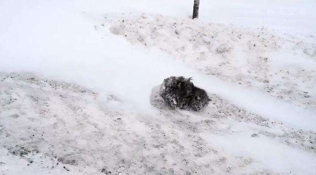▼他停車之後就近觀察,原來是一隻凍僵了的貓!