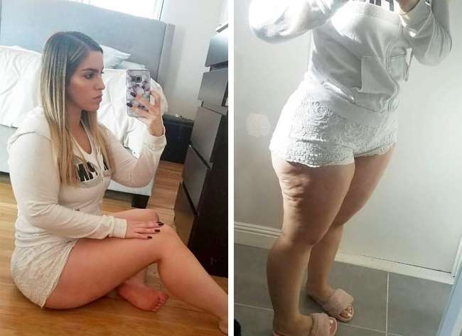 ▼這些女孩PO出美美的照片,隨後又PO出真實的日常照。不擺姿勢,不找特定的角度,她們看起來「醜」了很多。