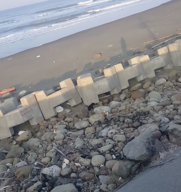 ▼騎士表示,他騎到865公里時,在海邊遇到了一隻流浪小黑狗。見到小狗的當下,他對自己說「只要牠爬上堤防我就帶牠走」,還拍下了「第一次與你相遇」的影片。小狗努力在石頭縫中爬行,不要一分鐘就爬上了堤防,讓他感慨「不養不行」。