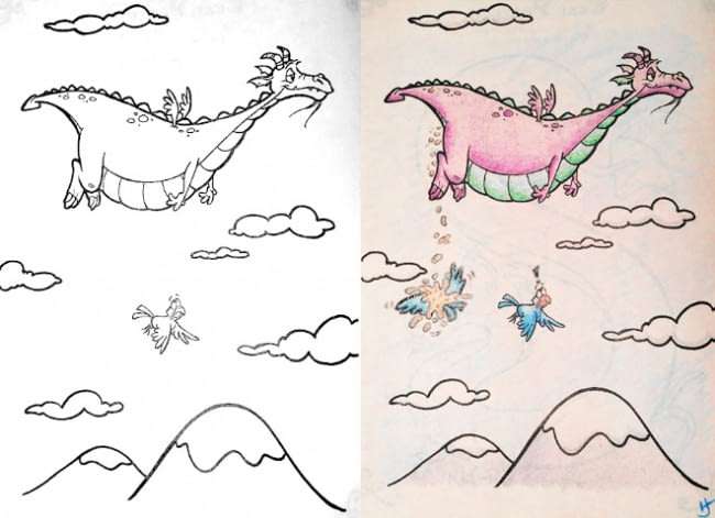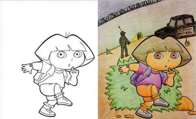 當大人玩兒童著色書時,肯定不會像孩子們那樣單純的用顏色均勻的塗滿就好了,他們會巧妙的運用顏色搭配和一絲邪惡的想法,把畫面變成一種惡趣味,不信來看看吧!