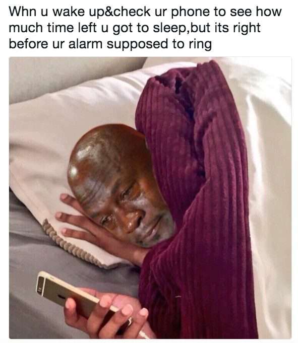 ▼「睡醒打開手機看還剩多少時間可以睡,結果發現鬧鐘就快響了時。」