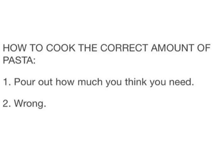 ▼「煮義大利麵時如何抓正確的量:1. 倒出你覺得需要的量。2. 錯了。」