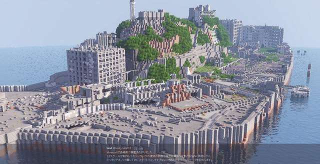 2018年01月05日大家喜歡玩《當個創世神》(Minecraft)嗎?在遊戲中打造屬於自己的世界,感覺超爽的。日本推特網友@land_ineraf37就想把長崎的「軍艦島」複製出來。軍艦島是一座半人工島嶼,外型酷似軍艦,也叫「端島」。他花費9個月時間一點點完善,最近終於完成了。