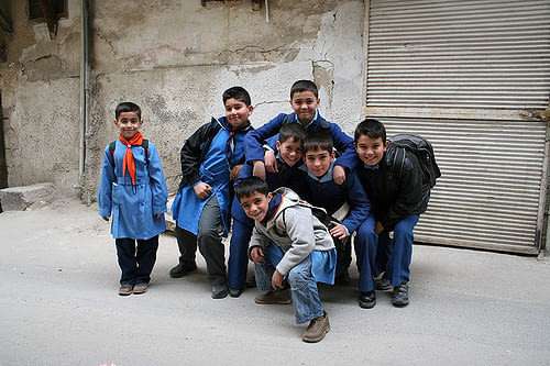 ▼敘利亞的校服是藍色為主,象徵著他們對和平的嚮往。