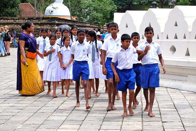 ▼斯里蘭卡的學生必須穿著白色的校服。男孩子會穿著白色的襯衫和藍色的短褲,但特別場合男孩子也要穿上白色的短褲。