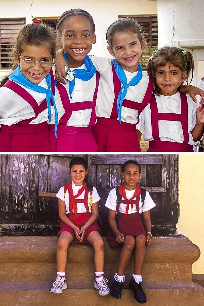 ▼在古巴,白色襯衫和紅色背心裙是必不可少的,其次再搭配一條領帶。