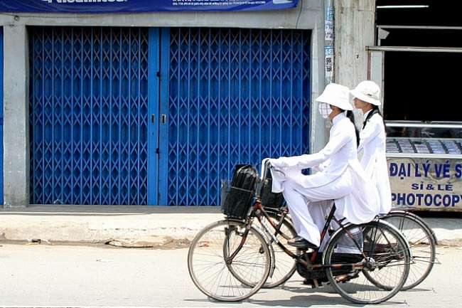 ▼越南中小學的孩子們穿著比較普通,直到高中的女生才可以穿白色的民族服裝「奧黛」。在一些學校女孩子只在特別場合穿「奧黛」,日常穿著也和普通人一樣。
