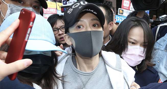▼陳喬恩在4日交保離開時,被大批媒體包圍。當時戴著棒球帽、口罩的她一路上頻頻說「對不起」。