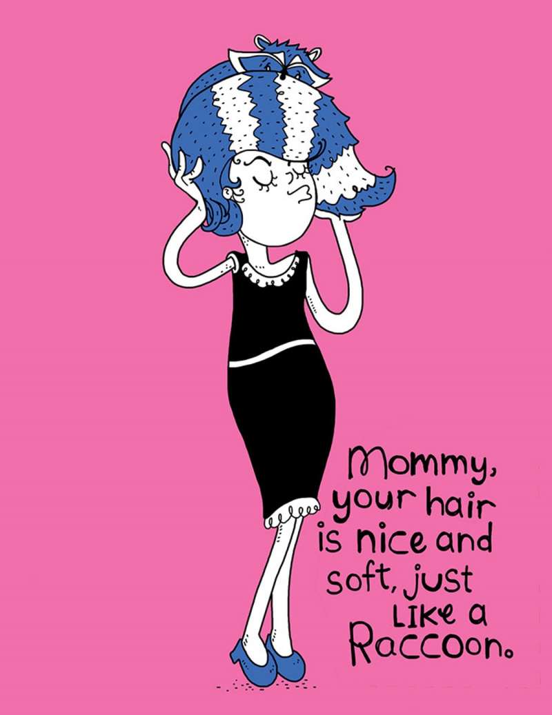 ▼「媽媽,妳的頭髮漂亮又柔順,就像一隻浣熊!」(媽媽該高興嗎XD)