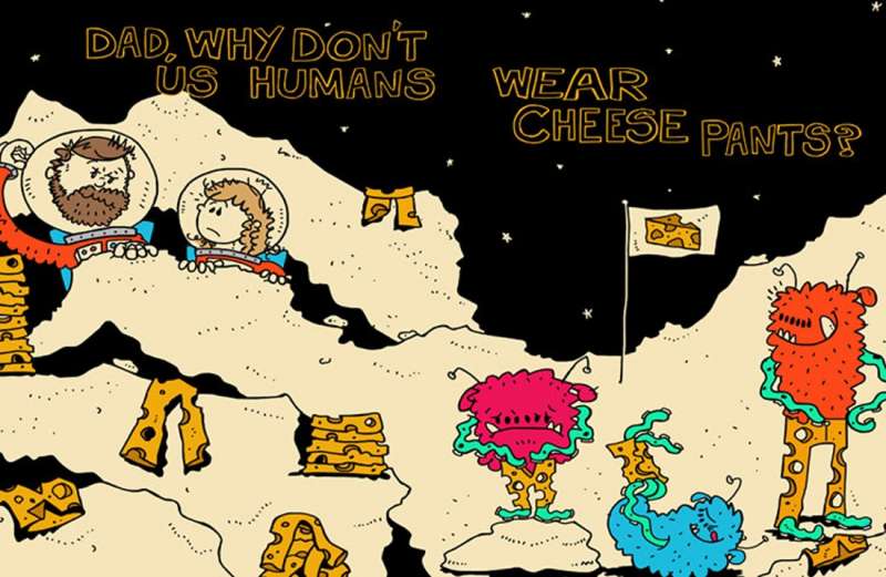 ▼「爸爸,為什麼我們人類不穿起司褲子?」