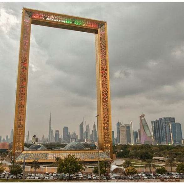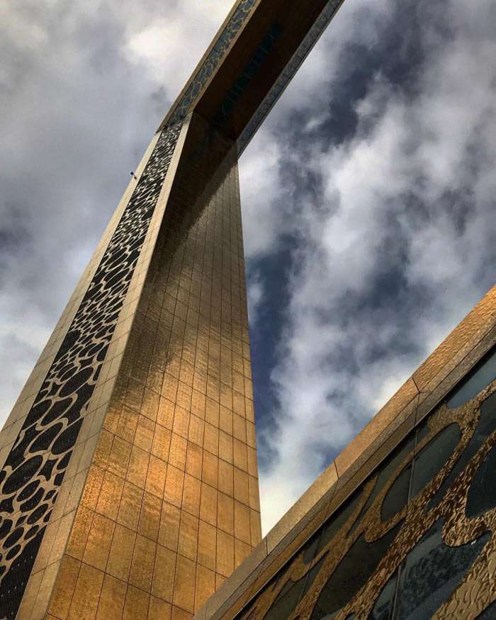 ▼這座建築很有杜拜的風格,整個表面都金光閃閃。上面還有玻璃橋,遊客可以在這裡360度觀看杜拜景觀。相框的設計靈感來源於2020年世博會的標誌,非常特別。