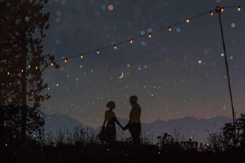 ▼襯著黑夜中的點點星光,兩人在弦月下獲得了祝福…